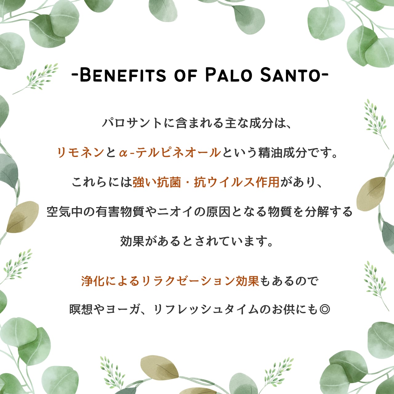 ※こちらのパロサントは、認証を受けた取引先から仕入れられております。